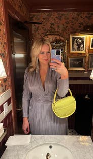 Wore to a dressy fundraiser event and got tons of compliments. The fabric feels great, drapes beautifully. I definitely could have sized down from a L to a M but it was fine. The only thing I disliked is that the buckle is bright silver and I'm more of a gold gal. Otherwise loved it!