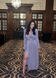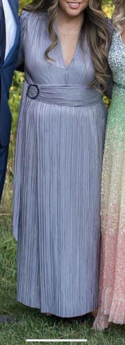Rented this dress to wear for our formal family pictures. It was stunning! The color is less silver and more pale purple just fyi. I had to put a small safety pin in the chest area because the cut is very low but I would rent this again to wear. It was gorgeous!