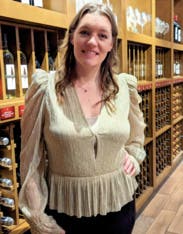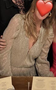 This top is gorgeous in person, great sparkle. Material is incredible thin however, and the back is completely sheer. Ideal for someone who can get away with not wearing a bra like in the photos. Sleeves are long and fancy. Didn’t wear