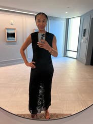I loved the crocheted overlay look of this dress and the neckline, but I could not get the inner slip up over my hips. I thought I was safe ordering a large since I’m usually a size 8 but apparently I should have size sized up even more!