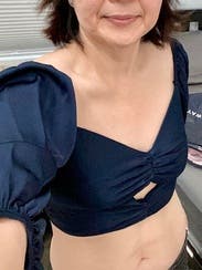 I loved the fit and the cutouts on this top. The shoulders are elastic, however, and kept falling down. I ended up not wearing it.