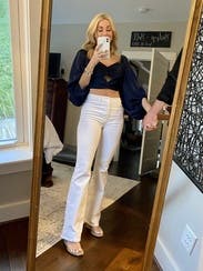 Comfortable and flattering. Love the cut outs and the back is sexy too! A fun date night choice with high waisted jeans.
