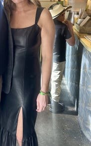 Size down in this one! I felt like it ran just slightly too big in the waist and chest. Fun leather midi that I feel like I could dress down with some tall boots or dress up with a fun earring and heels.