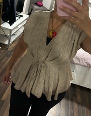 Had this favorited for months to wear for NYE. Didn’t wear though… definitely not as sexy as the photo. It’s like the actual top is the knock off version of the photo. Neckline isn’t even close to as deep. It feels way more matronly on than sexy. Total waste of a rental spot.