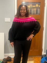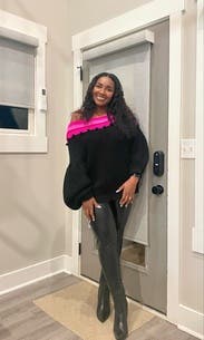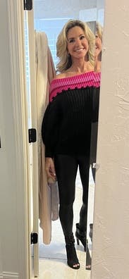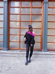 This off-the-shoulder sweater is cozy, colorful and sexy at the same time. IG @bethielife