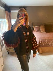 Loved this sweater, got so many compliments. I wore it a few times out to dinner and at a vineyard. I will rent this again this fall. I did listen to the reviews and I sized down, I rented a medium and it was perfect.