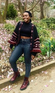 This is a cute piece but the sleeves were too puffy too layer and the front doesn't close or fasten in any way, which didn't make it as practical for the spring weather as I was hoping for. I also got a Medium, when I should I have gotten a Small to make it a bit more fitted.