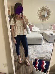 I thought this was a cute top to wear to work with jeans and white sneakers. Fit well and got compliments from coworkers.