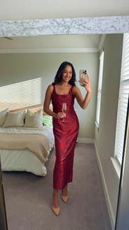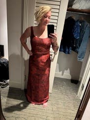 This dress is very pretty in person! I didn’t end up wearing it because it was just a bit too short on me for wearing with heels. I am 5’7 so anybody shorter than me would do well with this. Other than the length, the fit was perfect!