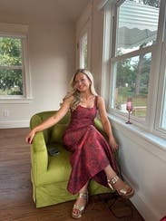 My college age daughter helped me pick this out online; we were both so excited to see it but in person it is not as pretty and looks a bit "dated" and it is not flattering on my "mom body" that is going through menopause and getting plump in all the wrong places.