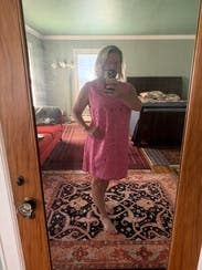 I liked the color on this one and length was petite friendly, but the linen material got wrinkly for vacation travels and I found the fit a bit boxy. Maybe I should have sized down?!