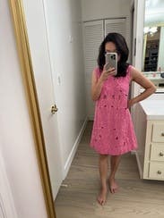 Light, airy, and fun! I really enjoyed wearing this swing dress to dinner, it had a tad extra room… I’d be afraid to size down due to length