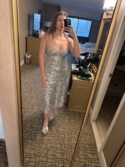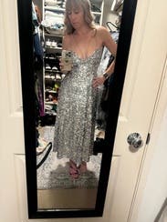 Loved the style and sequin quality, but it was just too big in my chest. Wasn’t going to work for a dancing party. Fun dress though