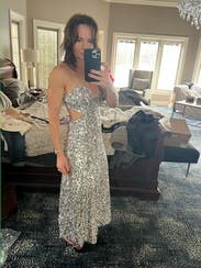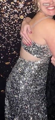 This dress was so much fun! It’s great for a short girl because it didn’t hit the floor. The straps were a bit long, but I could still wear it. It definitely sparkled on the dance floor! *One Note* the sequins on the back are scratchy. Be very careful about putting the dress on so you don’t get scratches on your back.