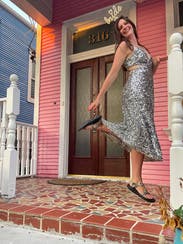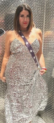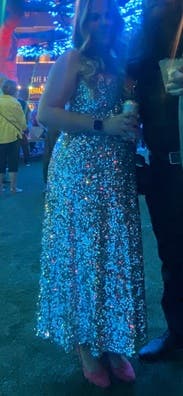 I love this dress so much! The sequins look great in photos and in person and it was a dream for a mamma Mia/disco bachelorette