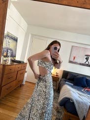 This dress was an absolute head turner, and I felt stunning. The sequins under my arms were a tiny bit irritating, but not terrible. There was residue on the straps from someone else using sticky tape, so that was a little frustrating but nobody could tell. The straps are very long, so if you’re looking for modesty, this is not going to be your dress, because the length of the straps make it an even deeper V, the dress barely covered my nipples, so I did have to be careful. I’m a 36B and bigger boobs would have filled this out a little bit better. I sized down to an 8 (inbetween 8/10 usually) and I could have gone with the 6.