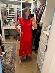 Looser fit but the bright red and embroidery detailing are the perfect combo for an elevated work dress