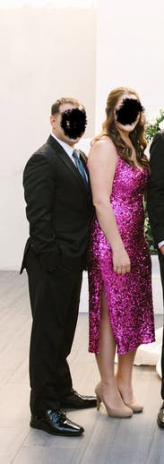 Such a fun and sparkly dress for an Arizona wedding! I absolutely loved this dress and would wear it a hundred times over! It has a little stretch in it so it fit perfectly and wasn’t too loose or too tight around the bust! Highly recommend this dress!