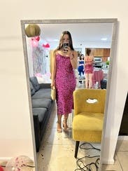 If you want a bunch of compliments, wear this dress! A very flattering midi length but for sure runs large, I usually wear a 2/4 and felt like I should’ve sized down to a 0. Perfect dress for a formal
