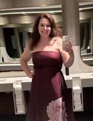 Wore this dress to a vow renewal (dress code: formal/semi-formal) and didn’t stop receiving compliments all evening. Color is more of a deep wine color than red/brown. Ordered in a 10 and 12- wore in the size 12. Top half is structured so it gave a good shape. Length was longer than midi on me but still looked great. This one was a return that I was so sad to make—would rent over and over