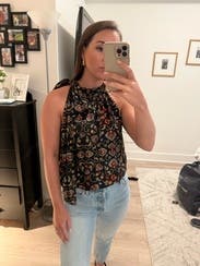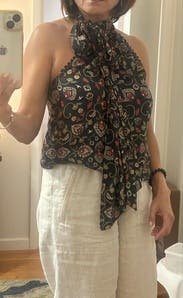 I liked this too but I couldn’t figure out how to style it best. It was low under the arms so I couldn’t wear a bra and was a little difficult to put on. It technically ties on the side rather than the back.