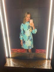 Great shift. Gorgeous colors. Fun for work. Short enough to be a good date night dress. Recommend