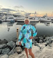 This dress was perfect for a Florida Keys wedding! The print was so fun and bold and I felt super mod and vintage in the dress! Super roomy and comfortable to dance in. Fabric is quite thick, not at all breezy but the silhouette allows for a billowy bottom!