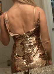 Gorgeous dress but top fits very strange. Straps are long but cups are tight. Everyone’s eyes went directly to my chest as I walked through the room. Also, the sequins change colors if flipped which I didn’t love. Overall it was great for the night and definitely turned heads.. felt fabulous. Just a few things that would prevent me from ordering again.