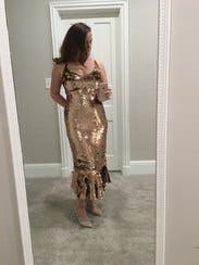 I loved the mermaid flip sequins on this dress. It is form fitting without being too tight! I feel like it hides all of my belly flab. I'm not wearing any shape wear in the photo. I'm planning to wear this dress with a fur cap to a "roaring 20s" ball next month.