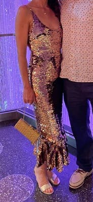 Obsessed. Felt like a million bucks, got a million compliments all over NYC… which is key while shooting engagement pics. We wanted moody glam and this dress brought it. Sexy fit, lots of cleavage if you have boobs, but really flirty/“cute” bottom. Length is amazing. Surprisingly comfortable, sequins aren’t scratchy. Overall knockout. Rent her.