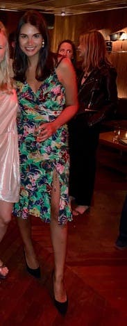I wore this to a wedding in Malibu with a tropical cocktail attire encouraged themed. The dress is perfect for hourglass shape and I would imagine gives odd the illusion if you don’t have one and are looking for that. The slit is adjustable! it’s a ruffle that goes up and down. The top in the chest area is looser but fit me perfectly. I did a size 6 - I definitely needed a size 8 but squeezed into this on the day of the wedding and made it work!