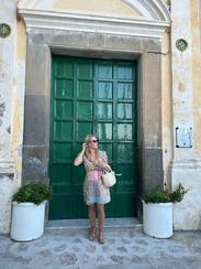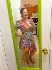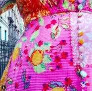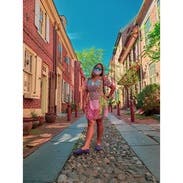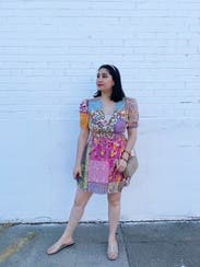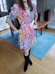 Touristing in Philly in Saloni! Received many compliments wearing this one! The chest area is a bit big and very low cut. Although, I love all the mix patterns and vibrant colors!!