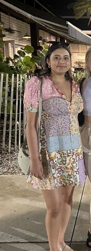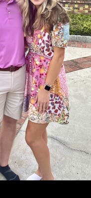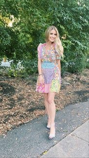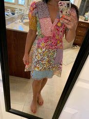This dress was the cutest! The colors and patchwork pattern are feminine and the length makes it a great flirty, fun dress. I wore for a full day of exploring during summer in socal and it was breezy and comfortable in the heat. I went with the 2 because the 4 wasn't available and while it fit fine, due to my height, I likely would've been more comfortable in the 4 so I'd say it's TTS. Definitely rent this one!