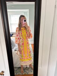 I probably could have sized down one more time because it runs a little big and falls low in the back. Otherwise such a cute dress!!