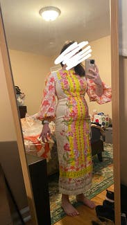 I’m obsessed. It was stunning. I felt beautiful. The colors were everything. Material great. The back made me feel so sexy and made my butt look big! I just adored it. Really. If I wasn’t on a teacher salary id buy it to keep 🥲 (RTR if you even want to give me this dress for my stunning review you know my address)