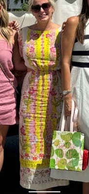 Just your perfect Saloni dress. I got so many compliments wearing this dress. The back gives a fun sexy edge to it. The silhouette is fun and unique and the pattern is perfect for spring.