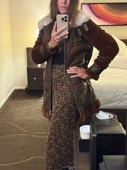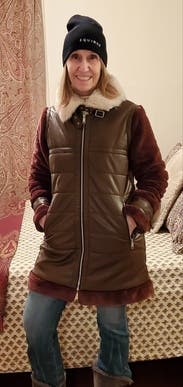 Really comfortable, warm enough for a evening out in the mountains but would not wear if it was bitter cold. It was lighter than expected, which was great for packing, but I wasn’t wowed by the leather — didn’t feel as luxurious as I expected.