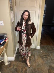 This is a bit of a dressy coat. I think it's absolutely beautiful but it's not completely my style. If I were to rent it again I'd go up a size so that you could layer more easily underneath. It is a Samanda Sipos, and I find that all of her jackets run a tad small. True to size if you're going to wear a T-shirt underneath.