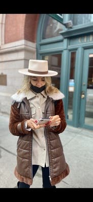 Loved loved loved this jacket, it’s super plush and fancy but still casual to wear everyday on vacay in a cold spot. Wore it in Denver in the fall and was perfect. I’m 5’5” 145lbs 36D and could’ve gotten a size small but rented a medium, still looked cute and worked well so don’t overthink it if you see it available! Love it so much. Wanna but it but it’s expensive 😍
