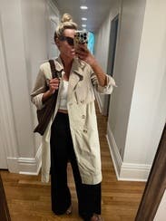 Cute trench but fit quite large! I wore this on a couple rainy days while in Texas. Holly Golightly looking for cat in the rain vibes.