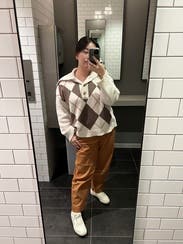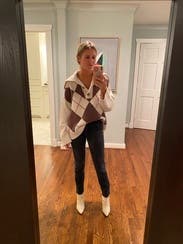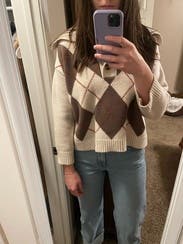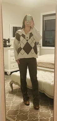 I love the old school golfer vibe this sweater had. I ended up wearing it multiple times bc it was so easy to wear with leggings or jeans. I almost went with an XS but glad I did a small bc it's much cuter oversized!