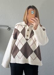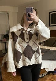 huge and cozy and fabulous. this argyle sweater is so soft and comfy, it's hard to send back. endless ways to style and wear thanks to the three button neckline.