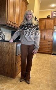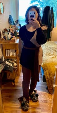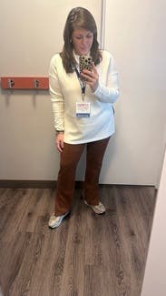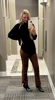 I loved these pants paired with an oversized sweater. They were so comfortable but looked like a really nice pair of suede slacks. I will rent them again.