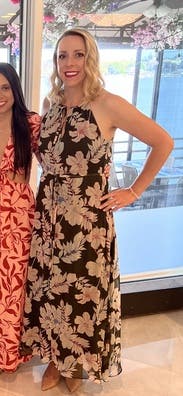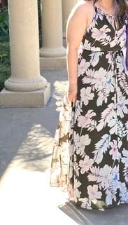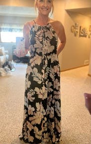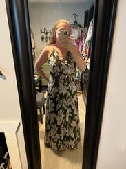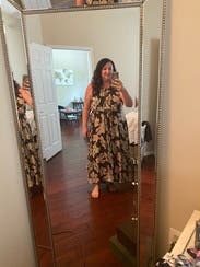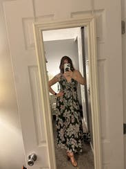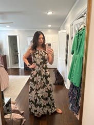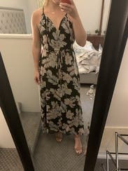 Loved this dress. I wore it for my craft party bridal shower in the summer and it was comfortable to be in all day. I loved the green and pops of color in the flowers. You could really dress it up and down and I like that the waist was adjustable. I would definitely rent again.
