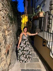 Loved this flowy dress for our Italian vacation that allowed a loosened waste string for more pasta. Flattered, fancy and perfect for the occasion of our tenth wedding anniversary in Portovenere, Italy.