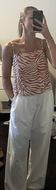 Did not love the top by itself. Is very boxy and fits very very loose. However with the shorts it’s a perfect outfit for a day exploring NYC. Definitely rent as a set. The set was very lightweight and easy to walk around in all day, even though it was very hot and humid. Will definitely rent again as a set.