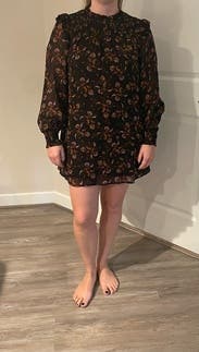 Thought this dress was so cute, and I ended up buying it because I loved wearing it! I’m typically a size 6 and found this dress to be true to size. I’m 5’2” and thought the dress was short on me, so I’m not sure what the fit would be on someone much taller.