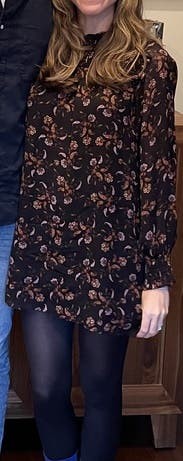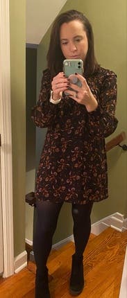 I like this dress as an easy go to over tights in the winter. For me it’s too short to wear without tights or leggings. But it’s baggy so if it were longer it would look too frumpy. It’s comfy and runs true to size.