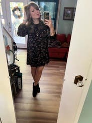 The perfect fall baby doll dress. A little short but looks perfect with tights! Definitely recommend! True to size