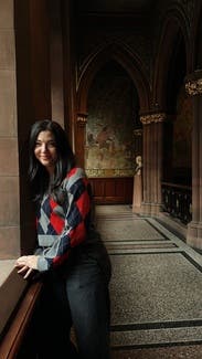 I pared this with a long white blouse, which peeked out from the bottom, for a cute nerdy look.